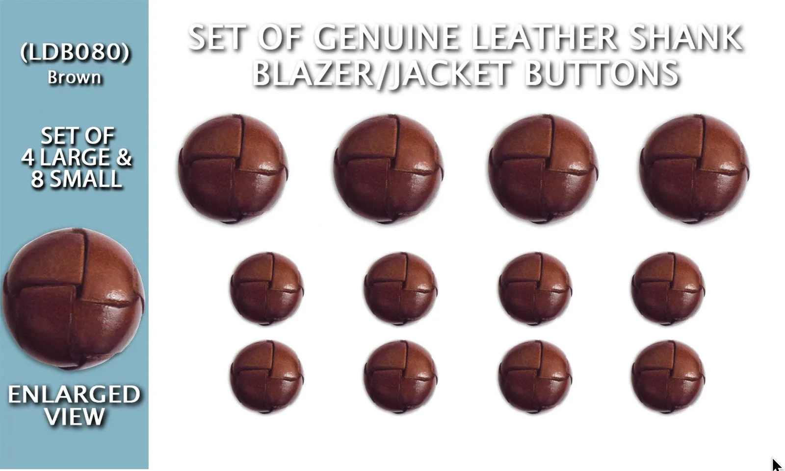 Genuine Leather Shank Jacket Buttons (Brown) Available in Sets of 3L/7S. 4L/8S, 6L or 6S) Large ø21mm, Small ø15mm